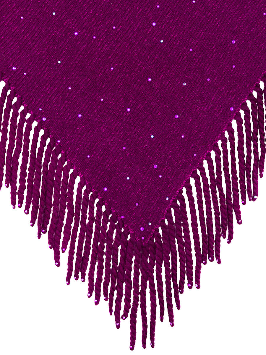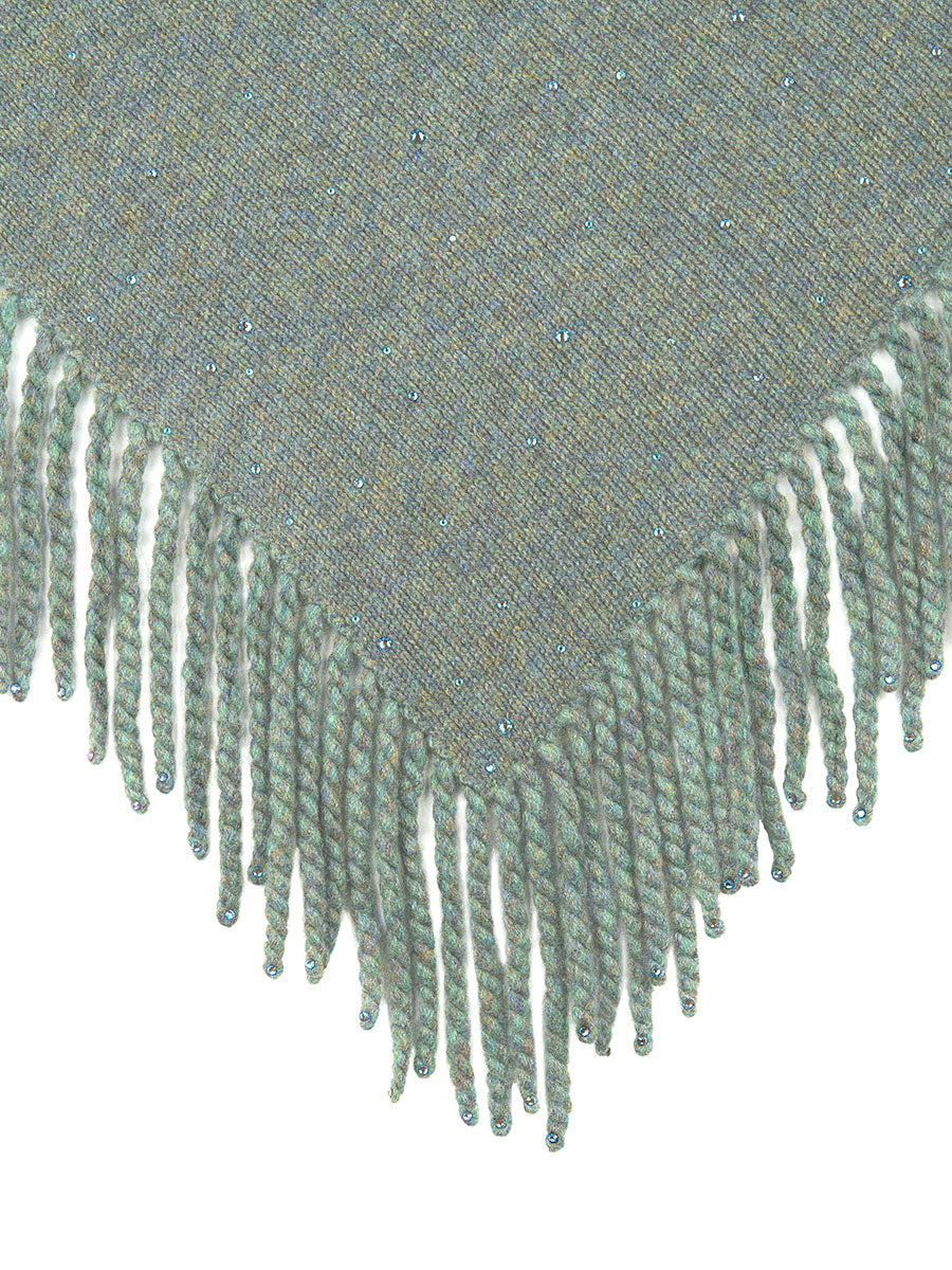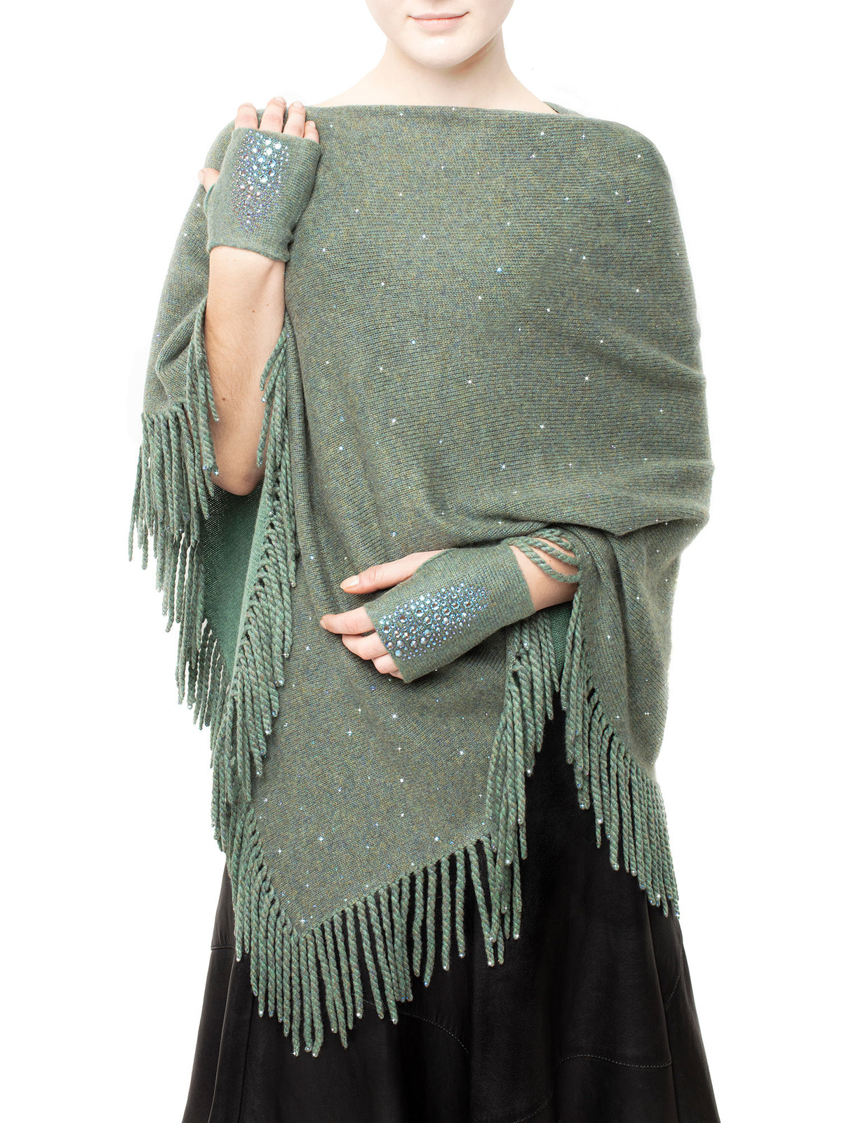 This delicious, everyday poncho has thick, buttery cabled fringe and a new "Constellation" all over embellishment with crystals. Each piece of fringe has two crystals on the ends of each piece.