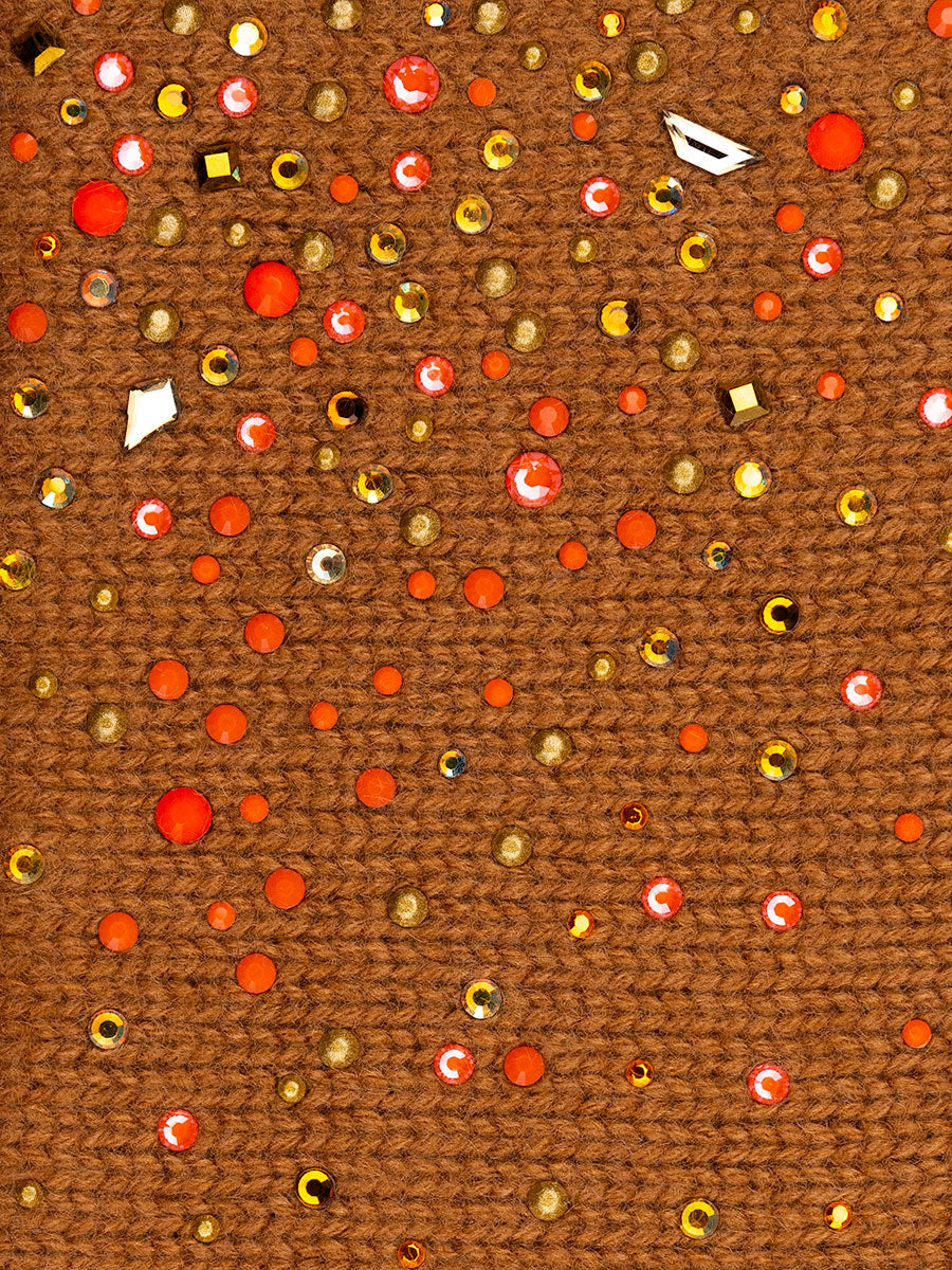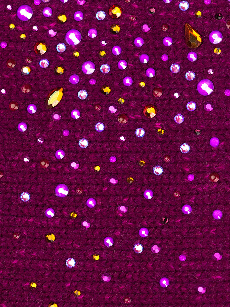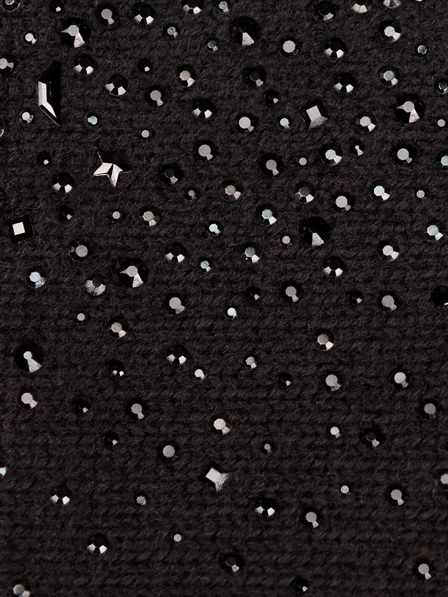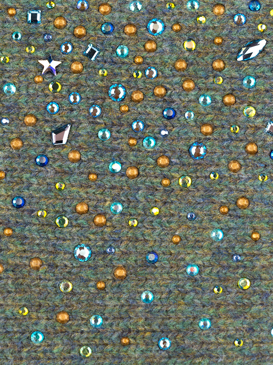 Our new Starry Night cashmere adjustable headband with an all over scatter of different round and "fancy" Austrian crystals and rhinestones. Boho Fabulous! Yes, we really said that! Measures 3" X 15", with four 9" cashmere cord ties.