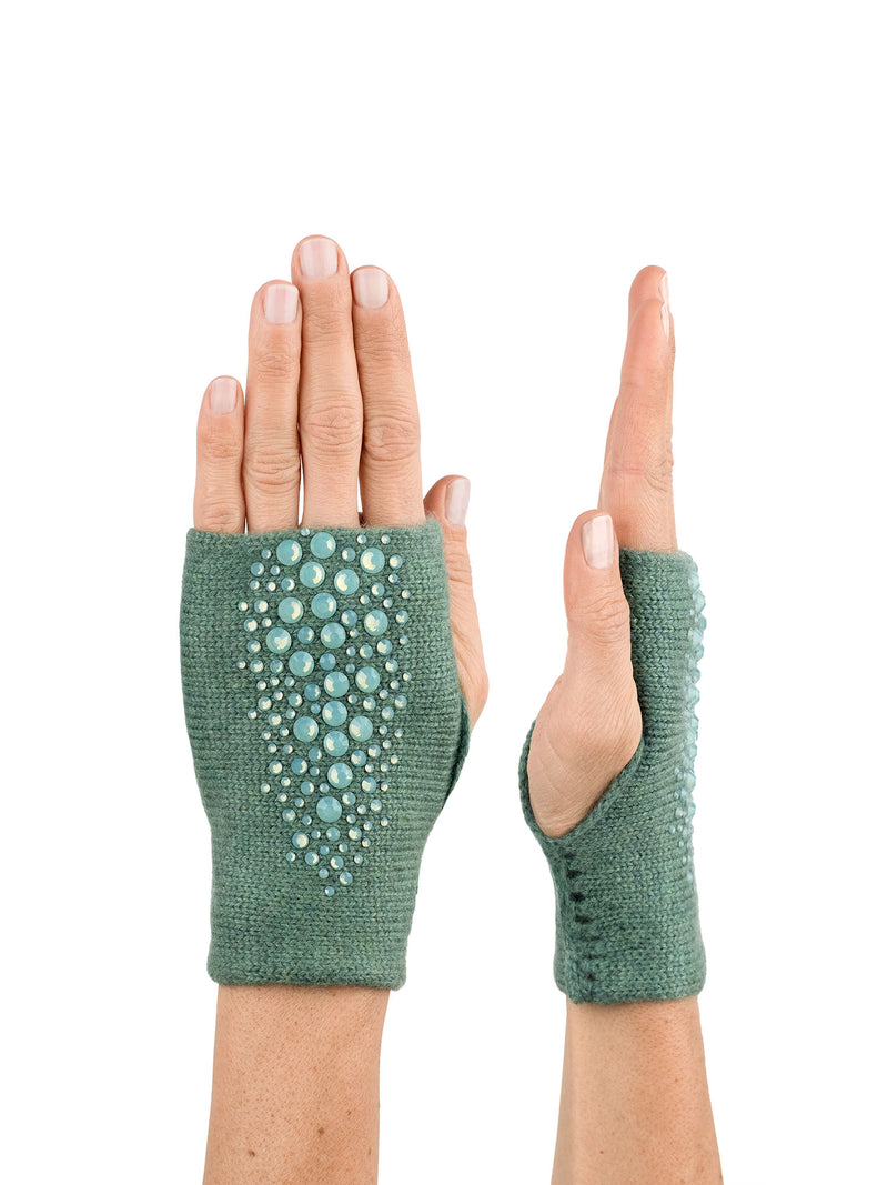 Our crystal-encrusted fingerless gloves have been a stronghold in our catalogue since Elyse's early days out of RISD's textile program and her 'Happy Banana' costume collaboration with Jim Drain. These luxurious gloves are highly functional, but also glamorous and a staple for many to effortlessly dress up the simplest outfit.