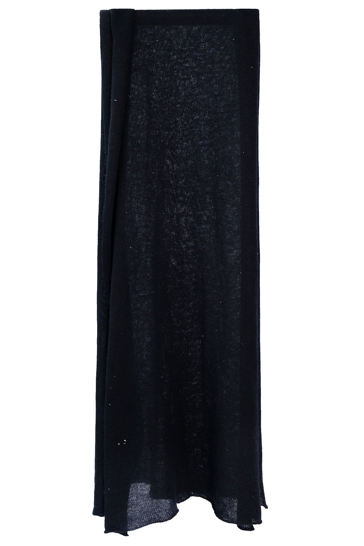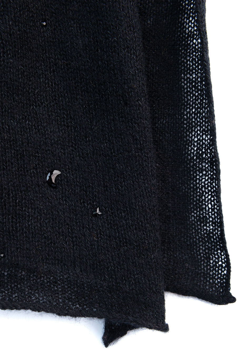Our new web exclusive black Tissue Weight cashmere-linen blend scarf is embellished all over with European crystals in jet black with sightings of crystal moons and stars! This is a great, versatile, lightweight everyday scarf. Measures 21" x 70".